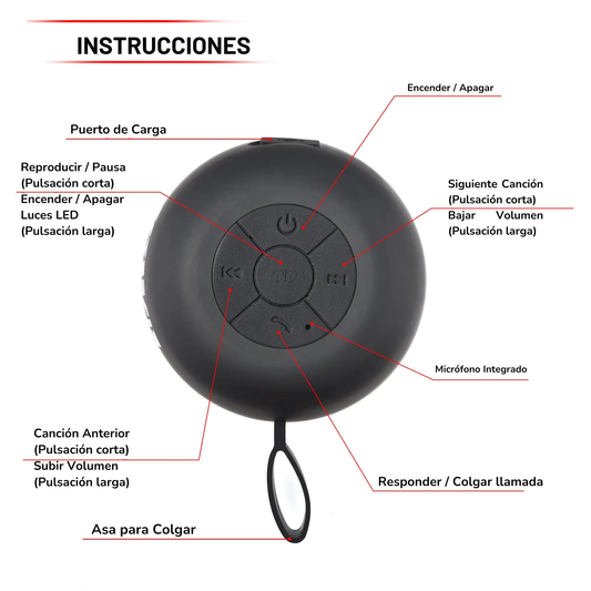 Altavoz Bluetooth Portátil (Resistente al Agua para Ducha)